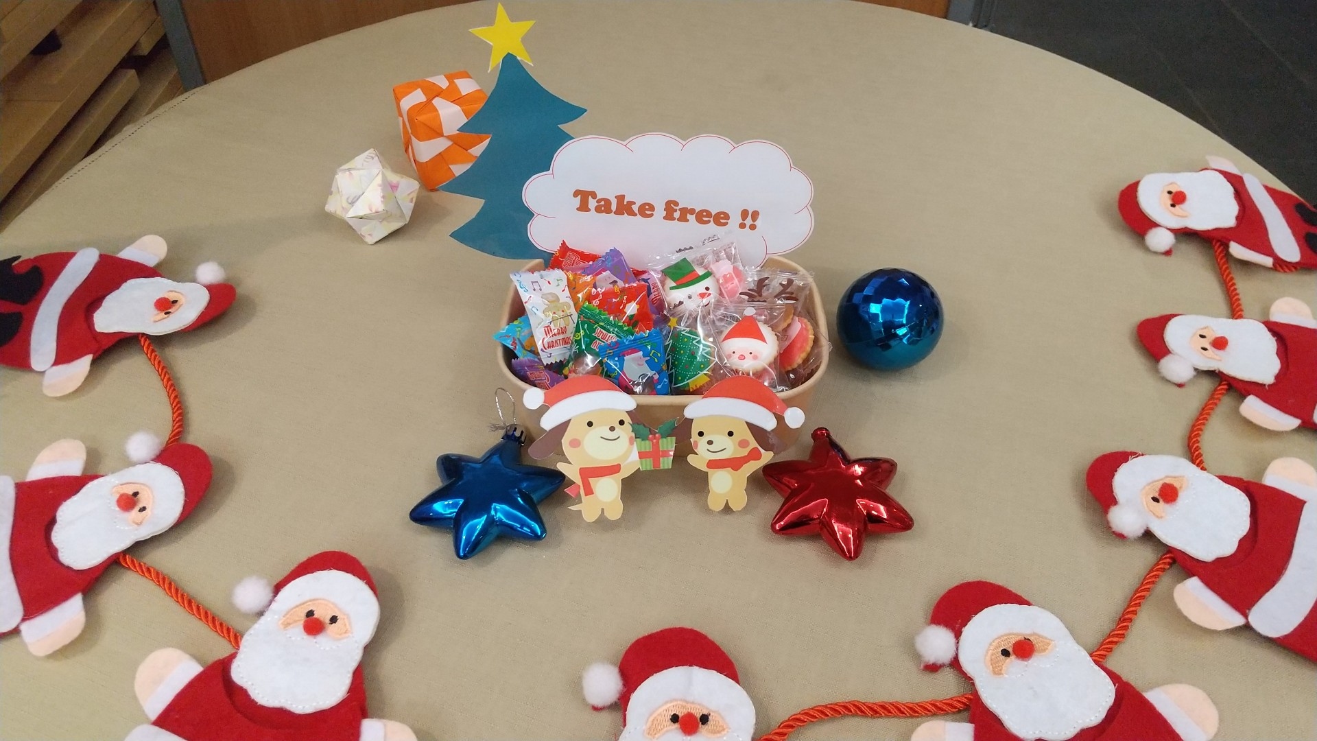 本日よりクリスマスにちょっぴり嬉しいお菓子をお配りしております。