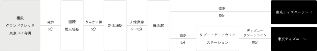 相鉄グランドフレッサ 東京ベイ有明は、東京ディズニーリゾート・グッドネイバーホテルです。宿泊者のかたは、東京ディズニーリゾートへ往復運行している『グッドネイバーホテル・シャトル』を無料でご利用いただけます。(予約定員制・宿泊者限定)