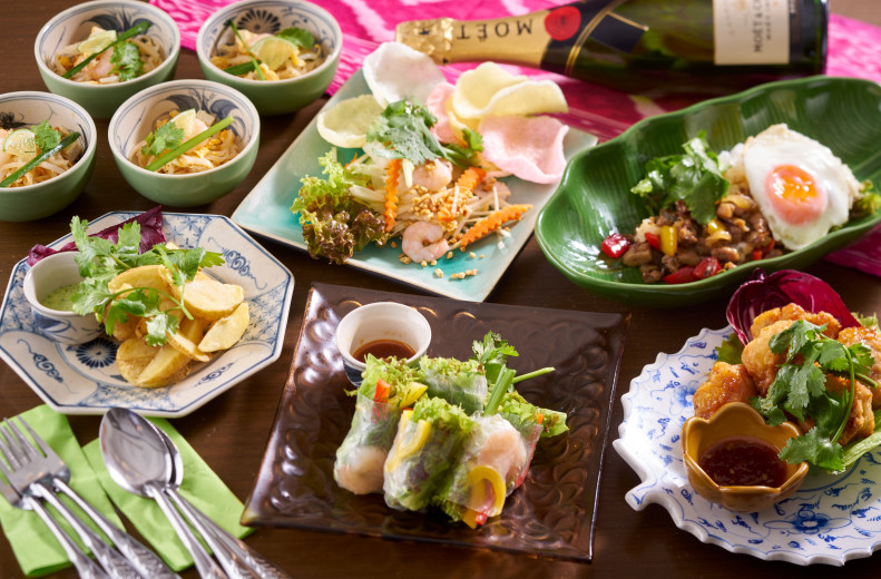 定番の生春巻きやフォー、トム・ヤム・クン、パッタイ、ガパオなど、