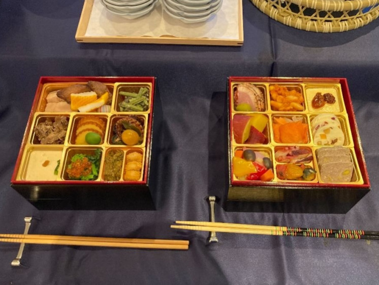 お正月らしい御節料理や、思わず目が留まる蟹の姿も。