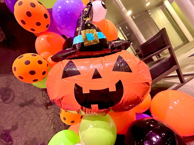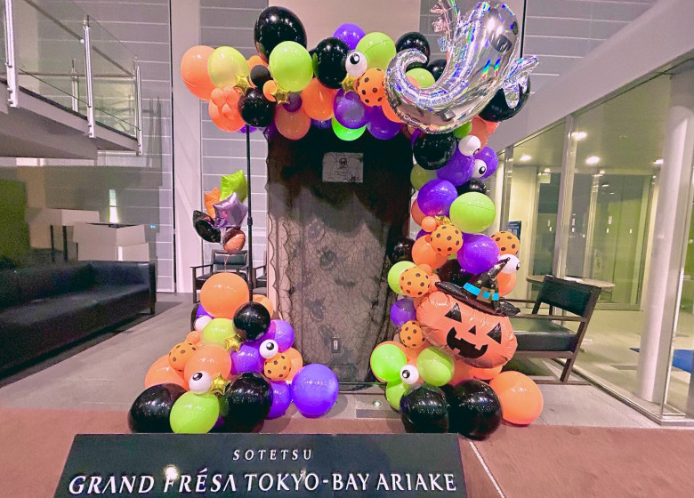 ロビーにはハロウィーンのバルーンを設置しております💜