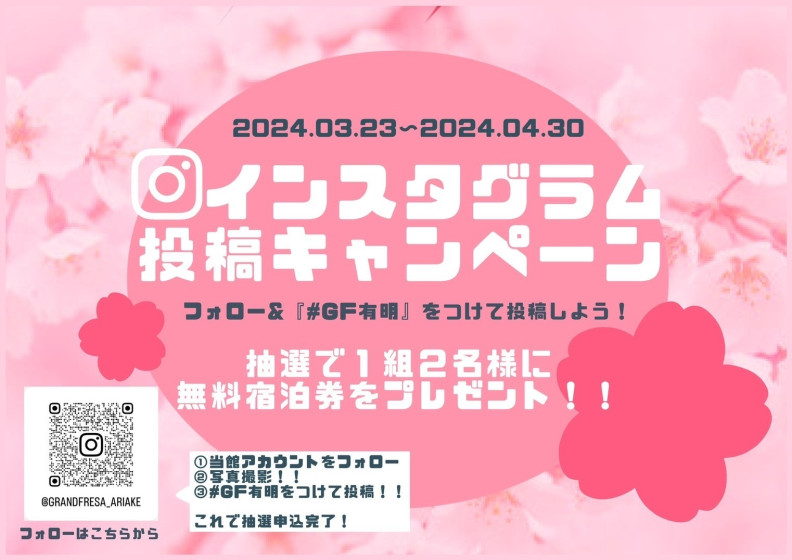 是非インスタグラムにも参加して1組2名様の無料宿泊券もゲットしましょう♡