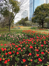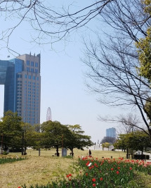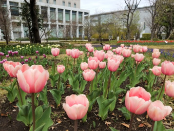 ホテルの南玄関を出ると一面に広がるチューリップ畑。
