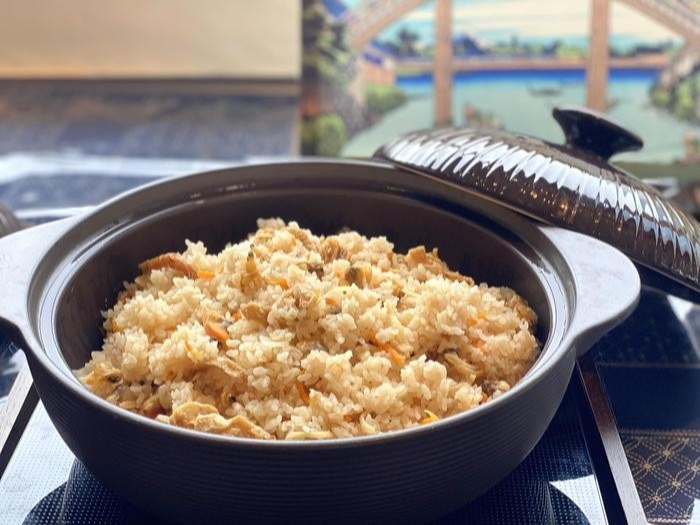 当館ではアサリやショウガを入れて炊き込んだ深川めしを提供しております♡