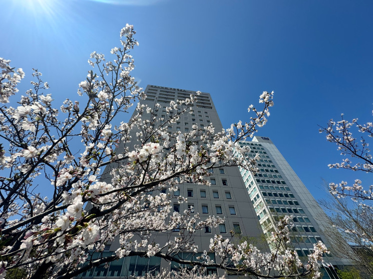 ホテル周辺がいちばんきれいな時期です、有明の桜が咲いています