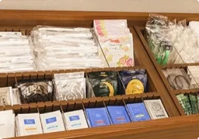 入浴剤や洗顔料、ティーバッグ等、ちょっとうれしいグッズをご用意しております。