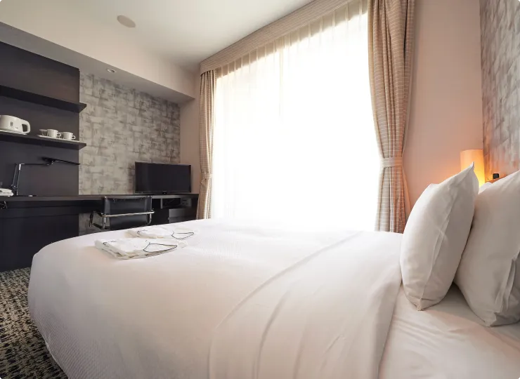 クイーンサイズの大きなベッドで、カップルでのご利用はもちろん、広いベッドでゆっくりお休みになりたいビジネス利用のお客様にも最適です。