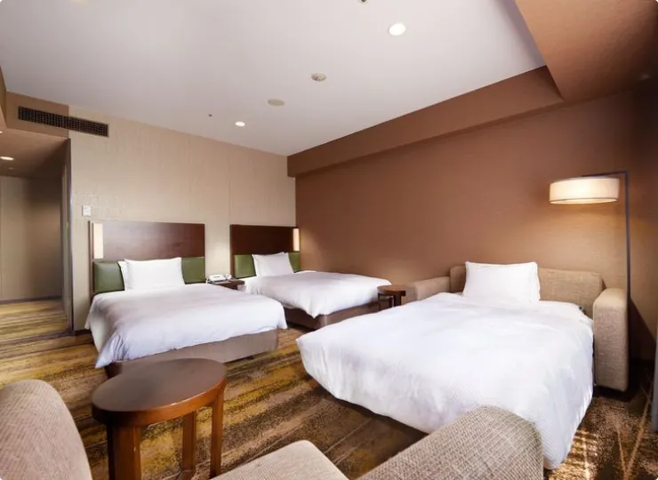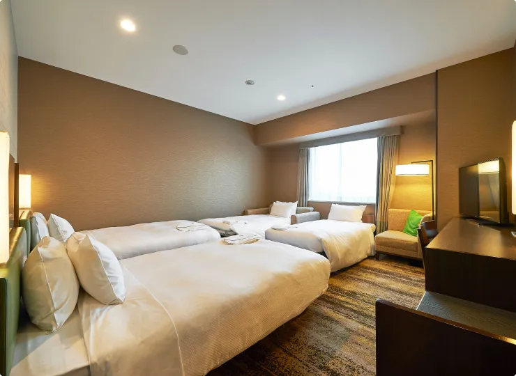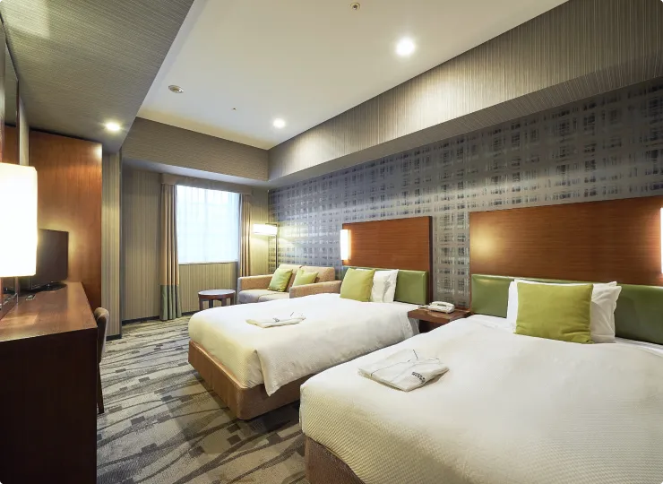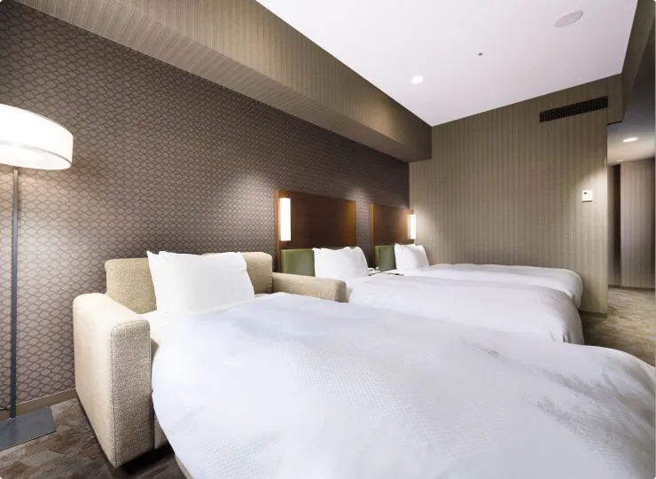 ツインより客室面積が広いタイプのお部屋で、ソファベッドのご利用で最大3名様までご宿泊が可能です。3名様でご利用になる場合の客室名称は「スーペリアトリプル」となります。