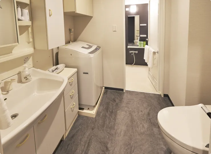 リビングルーム、キッチン、洗濯機を備えており、長期滞在の方にも快適にお過ごしいただけます。ご夫婦やファミリー、お友達同士とのご利用にもおすすめです。