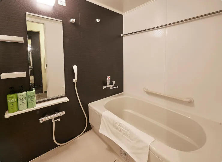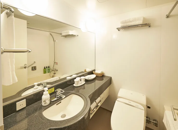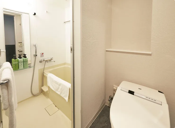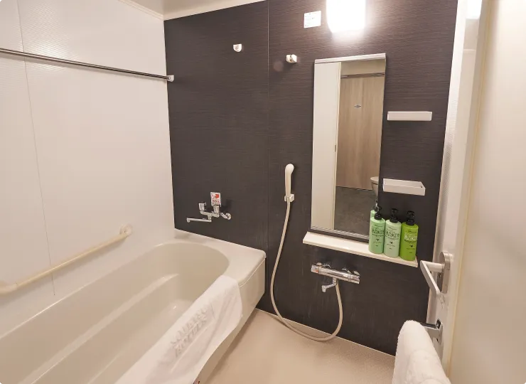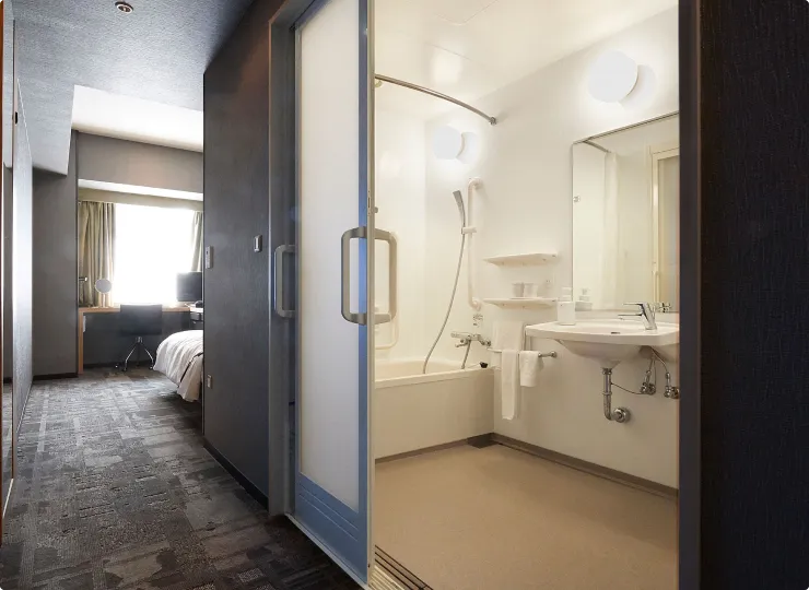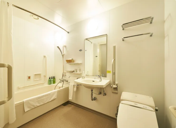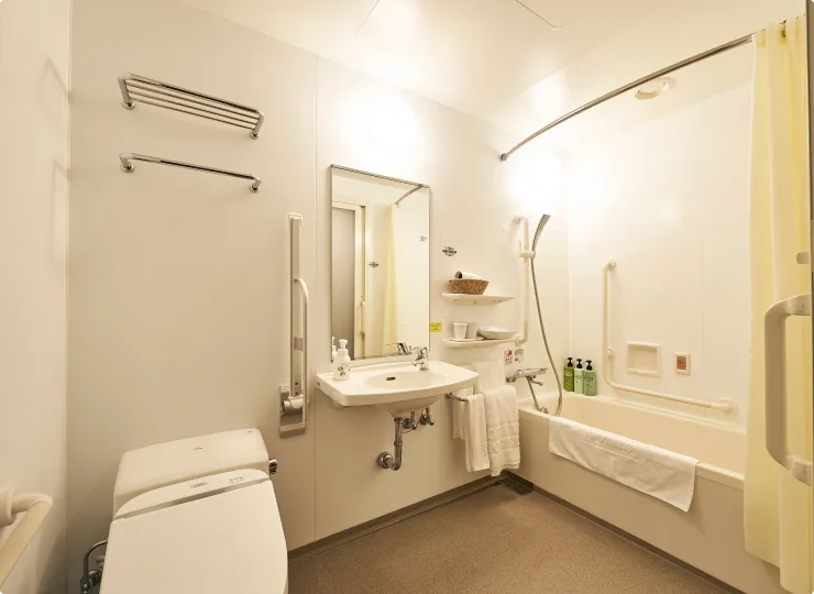 車椅子のお客様にごゆっくりお過ごしいただけるよう、電動ベッド(1台)、ユニバーサルデザインのバスルームを採用し、ゆとりと機能性を両立させたお部屋です。
