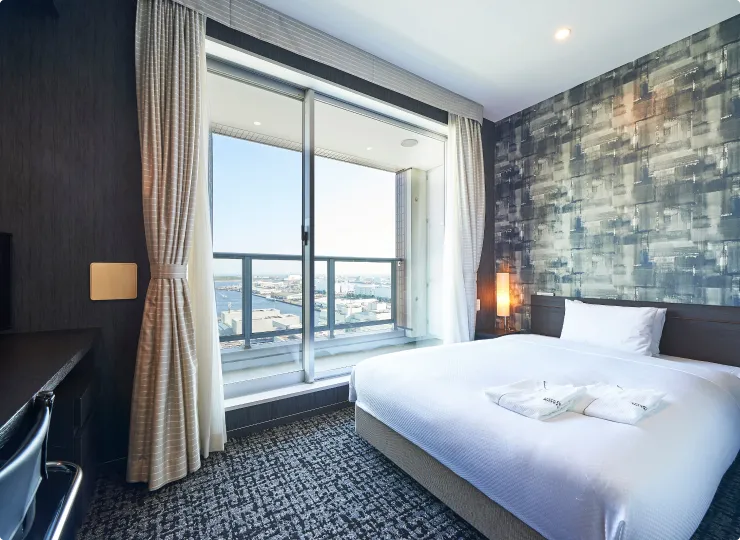 お台場や湾岸の夜景を臨む海側に面したお部屋です。長期滞在の方にも快適にお過ごしいただけます。1名様でご利用になる場合の客室名称は「プレミアムベイサイドシングル」となります。