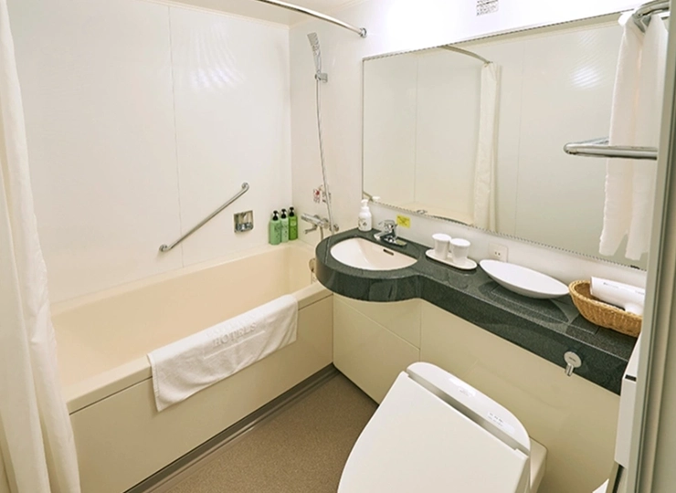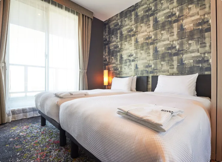 コンパクトにまとまった機能的なツインルームです。トランドルベッドのご利用で最大3名様までご宿泊が可能です。3名様でご利用になる場合の客室名称は「エコノミー トランドルトリプル」となります。バスルームはユニバーサルデザイン(車椅子対応仕様)となっております。