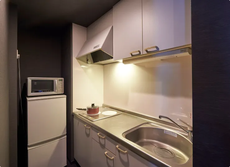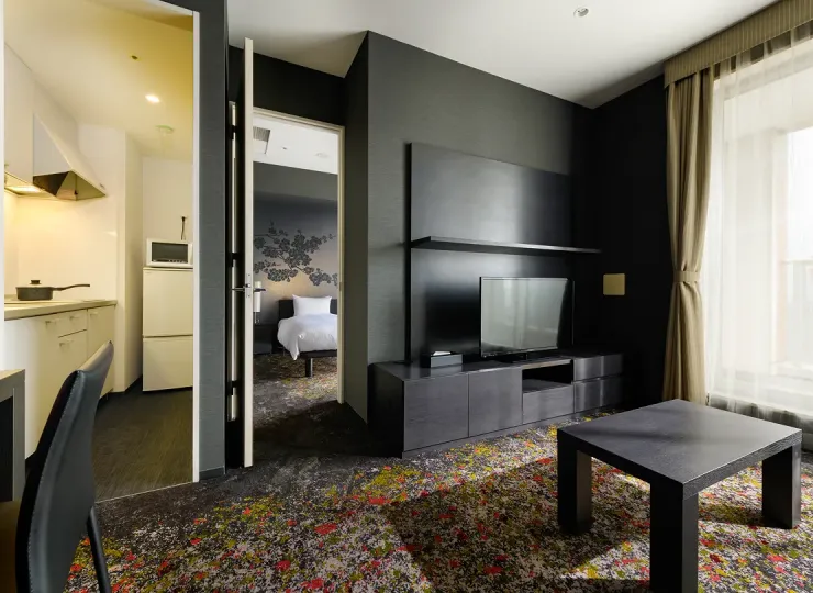 リビングルーム、キッチン、洗濯機を備えており、長期滞在の方にも快適にお過ごしいただけます。ご夫婦やファミリー、お友達同士とのご利用にもおすすめです。エキストラベッドのご利用で3名様でのご宿泊が可能です。