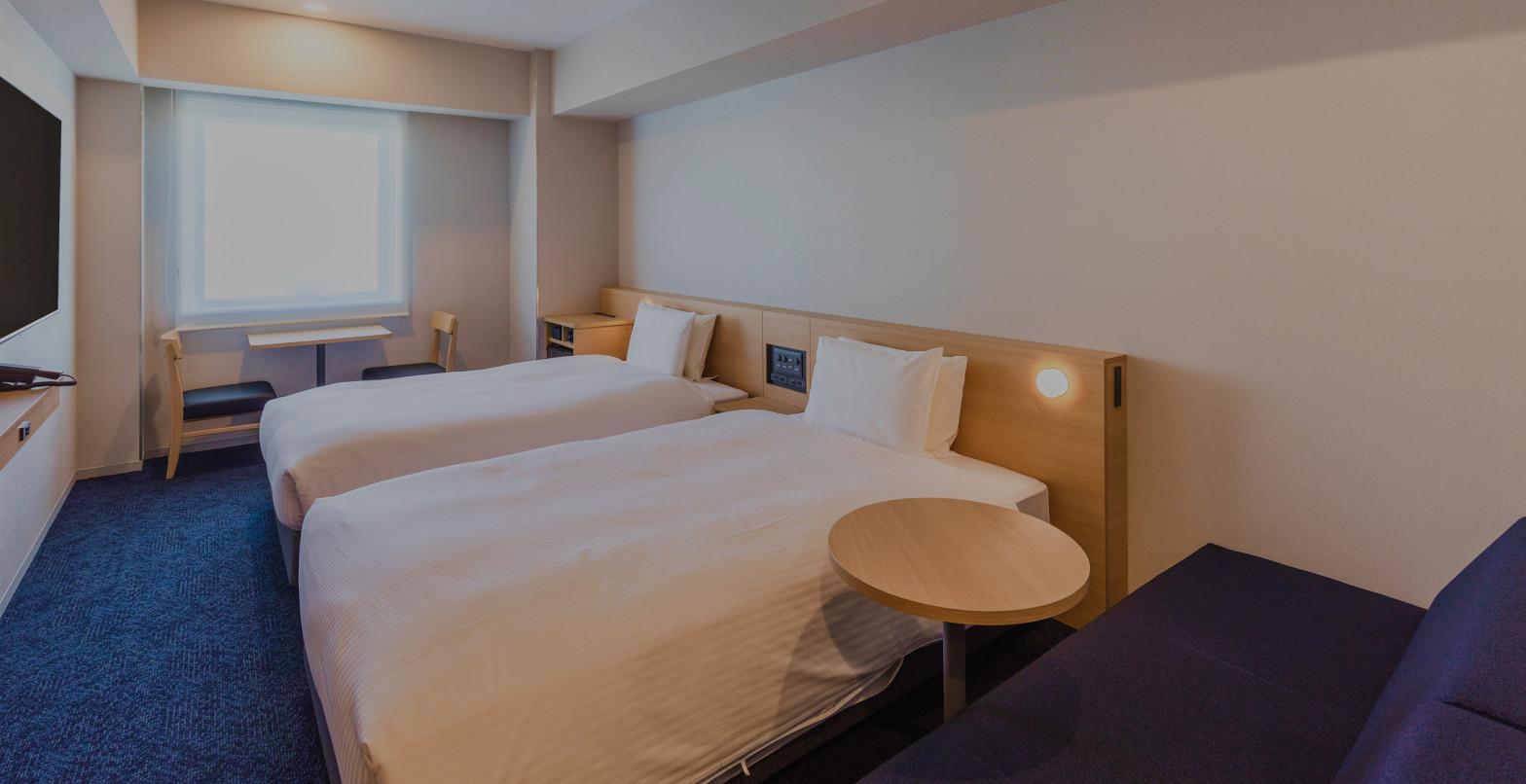 全米トップクラスの実績を誇るサータ社製ベッドを導入のほか、加湿機能付き空気清浄機完備、"良水工房"の浄水システム設置により、優しいお水を提供しています。「そうにゃんとくまモン」のコラボルームも登場。コンパクトなダブルルームをはじめ、コネクティングルームなど多様な客室をご用意しています。