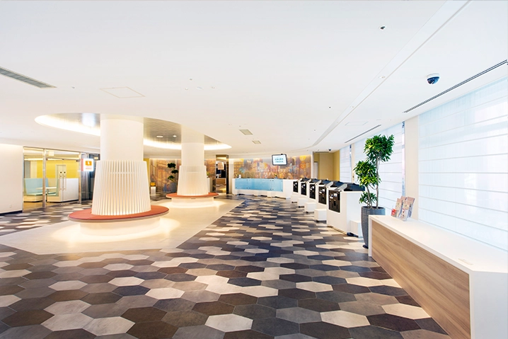 フロント・ロビーは1階にございます。フロントスタッフの笑顔ときめこまやかなサービスで快適な滞在をお約束いたします。