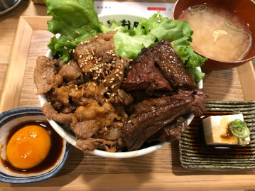 大迫力!!カルビとはらみ両方が楽しめるスペシャルな丼です。