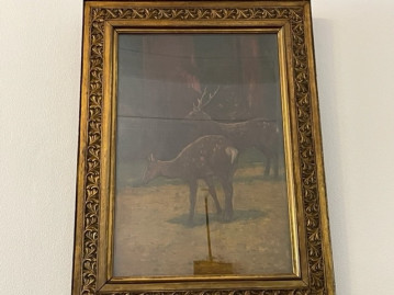 浅井忠の筆によると伝わる、奈良の鹿、京都の牛、大阪の安治川の三幅の絵も飾られていたそうですが、川の絵は、最近近くにできた中之島美術館に移動したとガイドさんから聞きました。