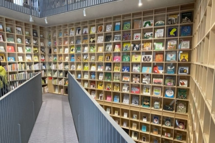 絵本から、仕掛け絵本、児童書、アート系の作品集・写真集、小説までさまざまなジャンルの本を12のテーマにわけて並べています。 現在の蔵書数は1万8000冊です。