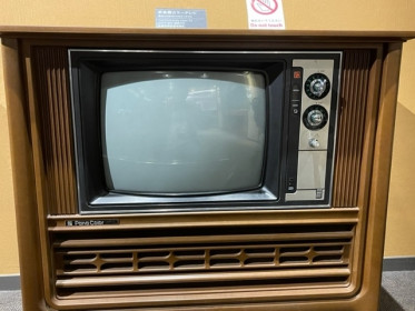 ガチャガチャ回すダイヤル式のチャンネルのテレビです。そういえば、こどもの頃のテレビと言ったら確かにこのタイプであったなぁと感慨深くなります。