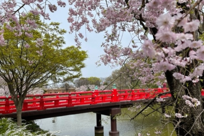 桜を臨むこの赤い橋はなんとも美しく、この茶臼山はこの橋を渡るだけでも非常に素敵な体験になりました。