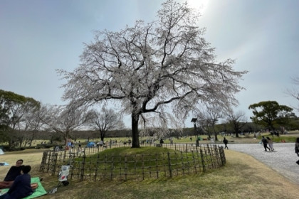 大きな桜の木を見つけました。園内の中心部です。