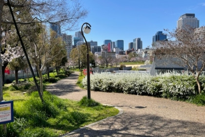 マウンテンスライダーなどの大型遊具があり、広々とした公園。キッズプラザ大阪に隣接していることもあり、子供たちが遠足で利用することも多い公園です。