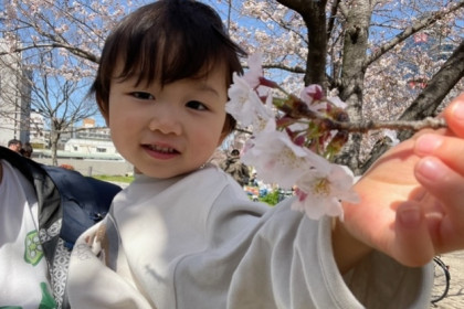 予測不能な動きのまなむすこと一緒に写真を撮るには、ちょっとした工夫が必要ではありますが、なかなかめんこい写真が取れたものだと思う今日この頃。