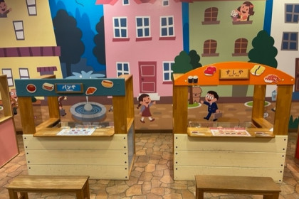 スーパーマーケット、郵便屋さん、屋台などリアルなごっこ遊びを通じて、街にはどんな仕事があるのか体験から学べる大人気コーナーです。