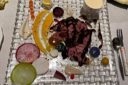 お皿の配置も大変お洒落です。もう言葉はなく、ただただ美味しいお肉でした。