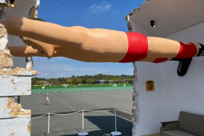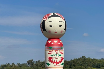高さ13メートルの巨大こけしです。なんとまぁ明るい色彩でフォトジェニックなオブジェですね。