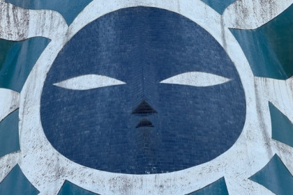 過去を象徴する背面の「黒い太陽」を接写。なかに入ることも事前予約でできるようです。