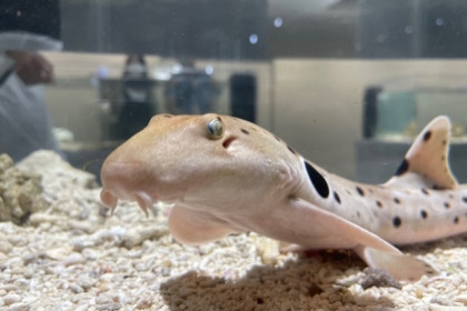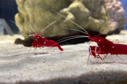 「いろにふれる」ゾーンで展示中の「アカシマシラヒゲエビ」は、背中に入った赤と白のストライプがとても美しいエビです。 別名で「スカンクシュリンプ」と呼ばれることもあるそうです。