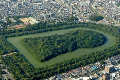 大仙公園を挟んで、仁徳・履中・反正の大王墓のほか、4世紀末ないし5世紀初頭~6世紀後半頃に築造された、巨大前方後円墳44基が集中しています。