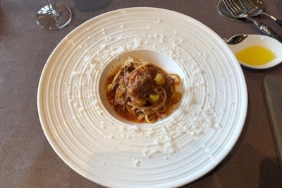 こちらはラグーソースのトマトパスタです。