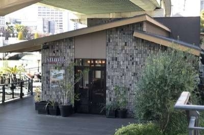 中之島公園を超えると、人気店のスミレさん。女性やカップルのお客様が多いお店で店から見える中之島の景観は素晴らしく素敵なお店です。