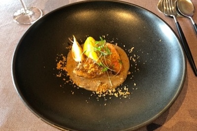 続いて、お魚料理です。ダブルメインにしたため、魚と肉料理が食べれるコースです。