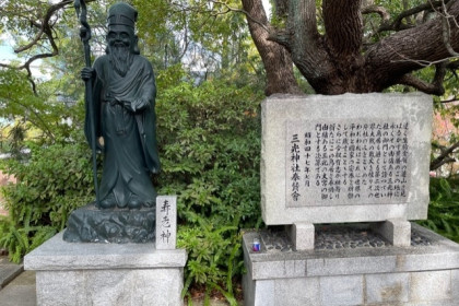 神社の境内社に「武内宿彌社」があるが、これは武内宿彌が日本一の長寿であった所から「七福神」一人の寿老人に重ね祀られています。