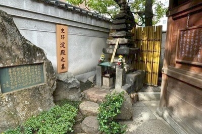 大阪城の落城によって秀頼と共に自刃した淀殿は、大阪城の外にあった弁天島に埋葬されましたが、明治10年、同地に城東練兵場(現大阪城公園)が造営された際に、豊臣にゆかりの深い太融寺に移転されました。境内にあり、お参りすることができました。