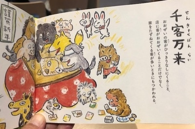 「どうぶつ四字熟語えほん」石井聖岳さんの絵本です。動物たちがかわいらしく四字熟語を説明する絵本なのです。まな息子も「ふむふむ」とわかったふりをしながら楽しんでいる風でした。