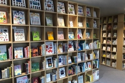 壁一面に本が美しく陳列され、こどもは勿論の事、大人も楽しめるラインナップです。