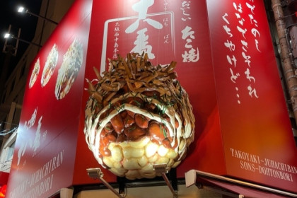 ひときわ目を引くたこ焼きのオブジェが乗っかっている人気のたこやきてん「十八番」さん。