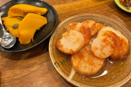 セットでかやくご飯と一品料理は山芋の和え物です。優しい味付けです。