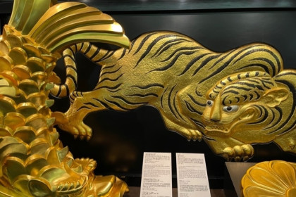 大阪城内には、金の茶室の再現や、戦国時代や夏の陣・冬の陣と戦国最後の合戦についての史跡を楽しめる作りになっています。そのほとんどが、写真撮影不可になっていますが、こちらの虎さんは撮影OKなのです。