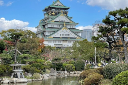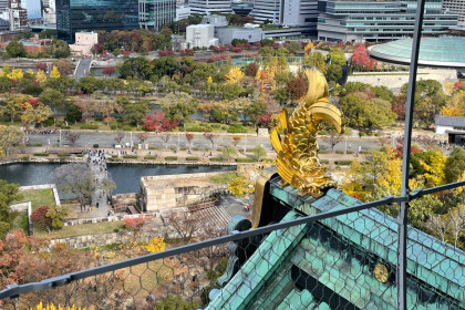 大阪城、大阪城公園は、大阪の中央に位置し、天守閣をはじめとする歴史建造物を有する大阪城公園は、紅葉シーズンの景観も人気となっていました。