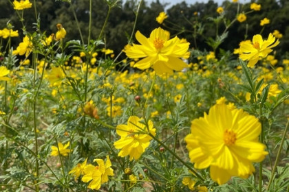 これもまた美しい、黄色いコスモスも咲き乱れています。