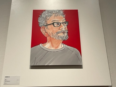 とてもやさしいタッチで見た事あるなぁと思っていたら人気漫画家で奥様の「安野モヨコ」さんが書かれた肖像画のようです。
