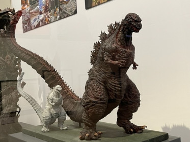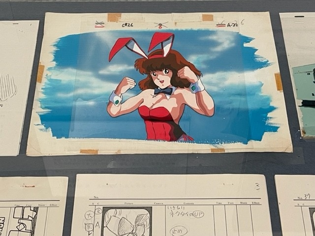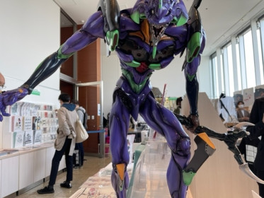 入口付近にはこちらの看板が目を引きます。てっきりアニメメインかと思っていましたが、若かりし頃の庵野さんの特撮を本人主演で撮影したもののようで、別のコーナーでその映像を見てくすりと笑うことが出来ます。