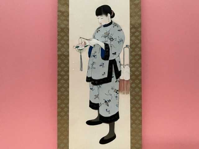 手元の蝋燭に視線を遣る一瞬の情景を捉えた、エキゾチックな上海ガールが魅力的に描かれています。