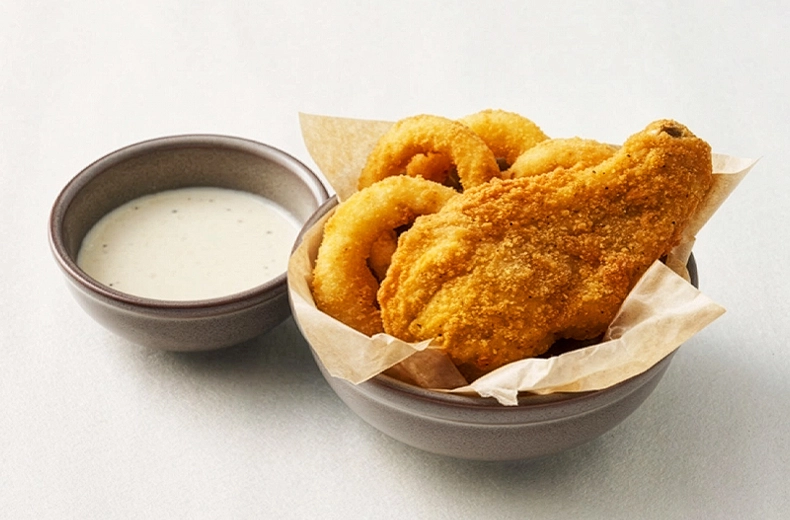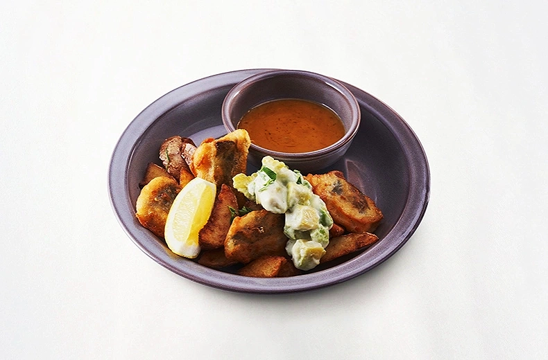 相性抜群の「バーベキューソース」をかけてお召し上がりください。