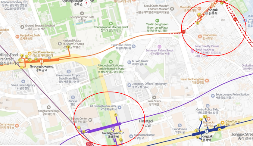 4月4日、安国駅の閉鎖および光化門でのデモにより、